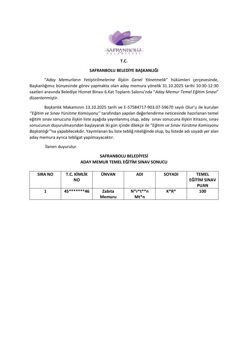 SAFRANBOLU BELEDİYE BAŞKANLIĞINA İLK DEFA ATANMAK ÜZERE SÖZLEŞMELİ PERSONEL ALIM İLANI